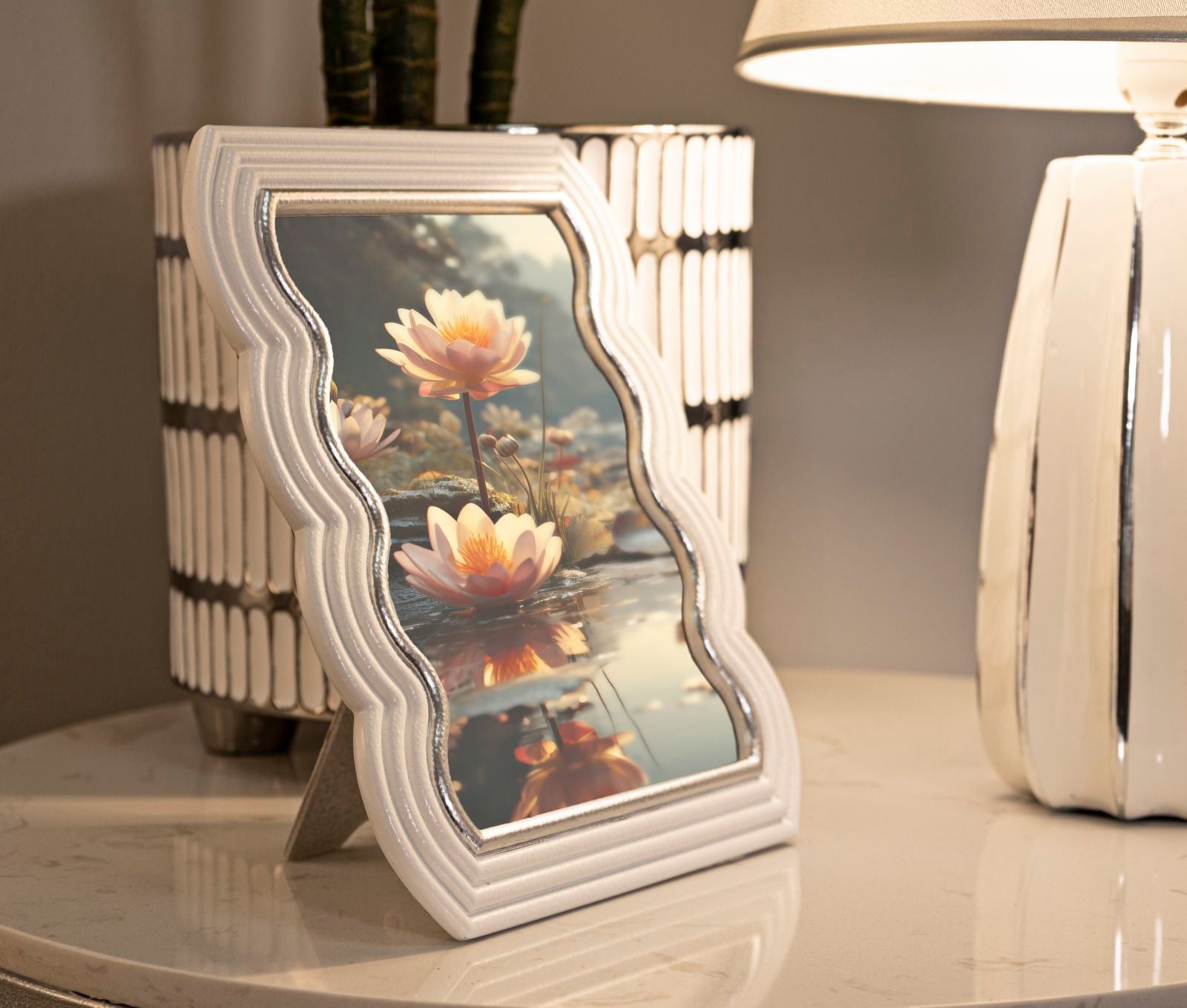 La cornice Curty presenta un design semplice e moderno, perfetto per esaltare fotografie o stampe senza appesantire l’ambiente. Realizzata in resina con finitura bianca opaca e dettaglio silver, è ideale per chi cerca uno stile pulito e versatile.