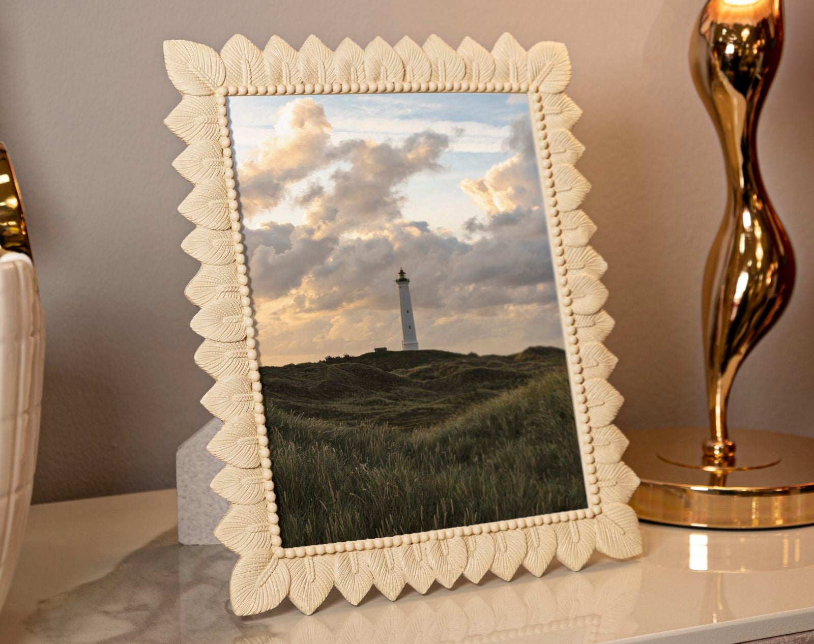 La cornice Light Leaf con misura interna 20x25 cm presenta un design elegante e delicato, caratterizzato da un motivo decorativo a foglie che abbraccia la struttura con raffinatezza. Realizzata in resina resistente, questa cornice è ideale per esaltare fotografie, stampe o piccoli quadri con un tocco di classe.