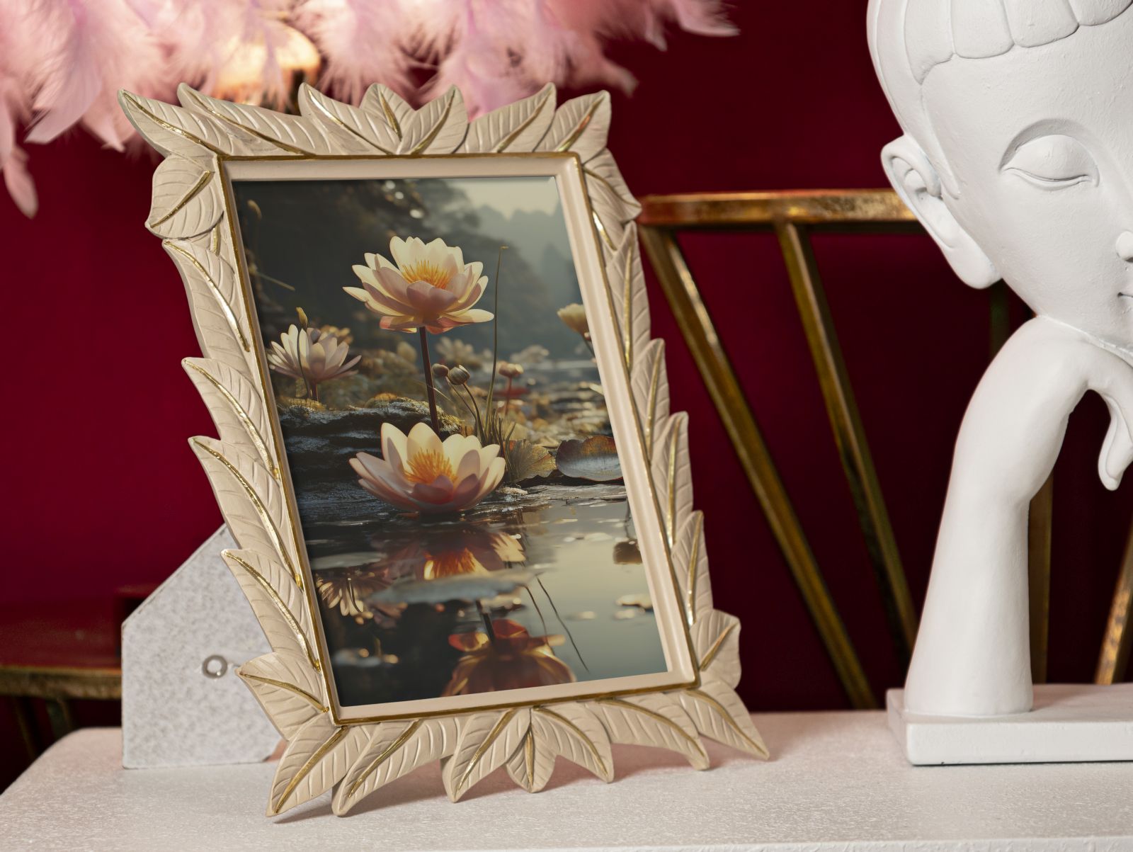 La cornice Leaffy si distingue per il suo motivo decorativo a foglie che avvolge delicatamente la struttura, donando un tocco naturale ed elegante. Realizzata in resina con finitura oro satinato, questa cornice è perfetta per valorizzare fotografie, stampe o piccoli quadri con uno stile raffinato e luminoso.