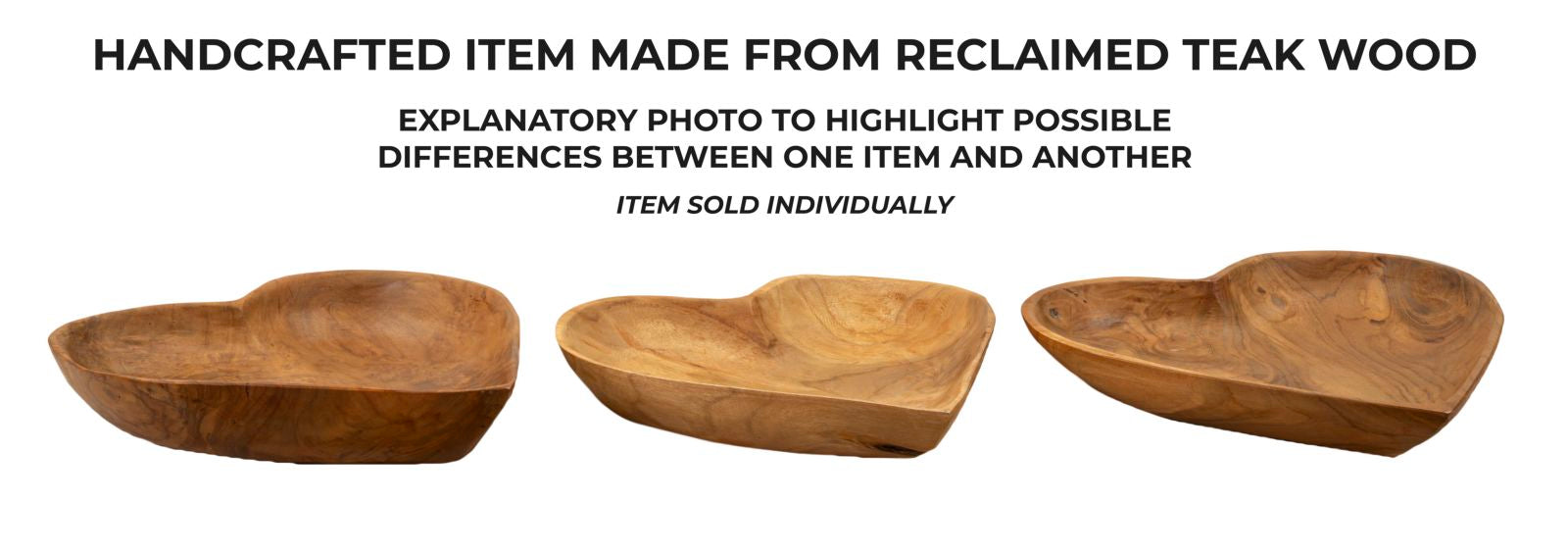 Svuotatasche a forma di cuore in teak riciclato, realizzato a mano, emana calore e charme. Ogni dettaglio artigianale lo trasforma in un pezzo unico, ideale per custodire con amore i tuoi piccoli oggetti quotidiani.