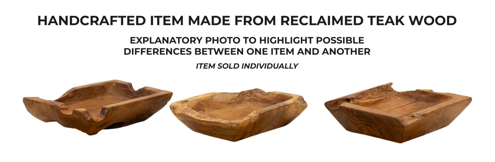 Elegante e sostenibile, svuotatasche in teak riciclato combina forme squadrate e artigianalità per un tocco di raffinata autenticità. La calda tonalità del legno aggiunge una nota di naturalezza e stile al tuo ambiente.